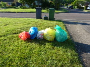 By the time my research had got this far, I decided to sign up – as a sort of “pilot” project for Silchester. Signing up is a very simple process that can be done online in a few minutes. There is a one-off £13.50 charge for the “Welcome pack” – a neat, A4 box containing coloured plastic bags, some tags, string, a pencil and a few sheets of information and “instructions”. These bags (and bits) are replaced with an empty one, whenever they collect a full one.